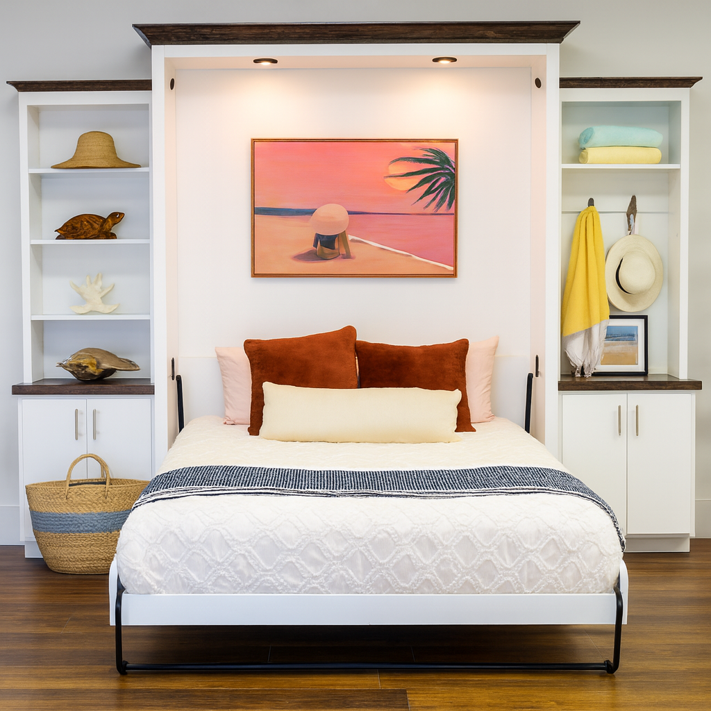 Do you need a home office and a place for your guests to stay? Wall beds are the perfect solution for any room in your home needing more space. They help to maximize and utilize your spaces, while also adding additional storage and organization.