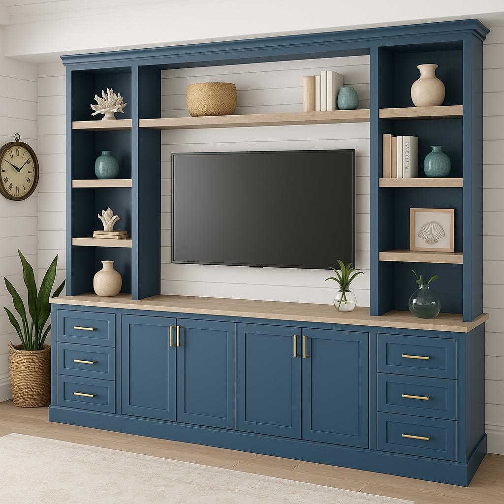 Coastal Closets and Showers has got you covered with all the custom wall units be it a small alcove, fireplace, nook, bedroom or TV wall. The wall units are crafted to meet any space requirement. Let your imagination run wild with the most versatile designs.